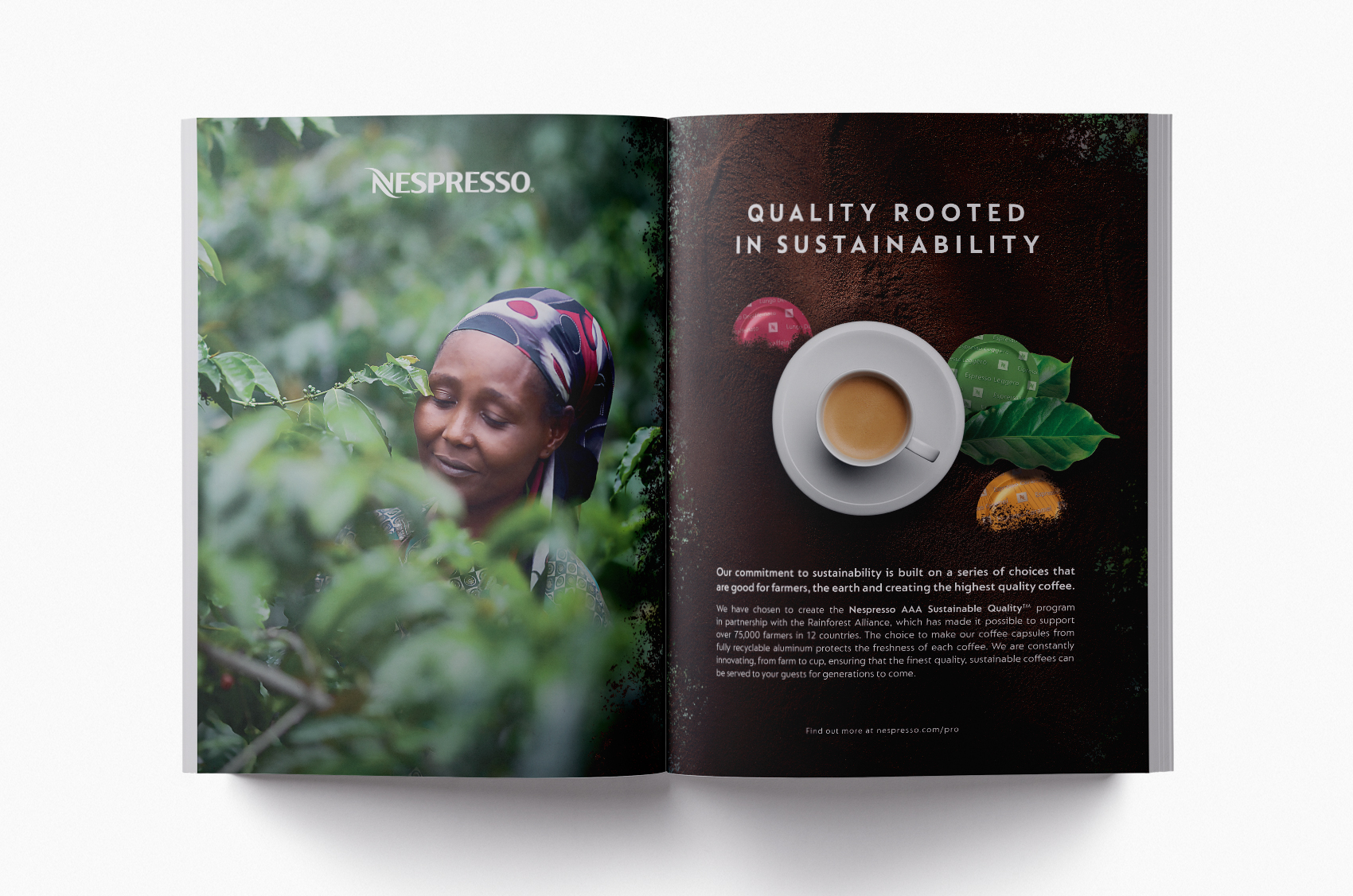 Full page spread to showcase Nespresso’s single origin coffee line at a StarChefs event in 2018. The graphic at the right was a composite image, using a mix of stock and brand photography.